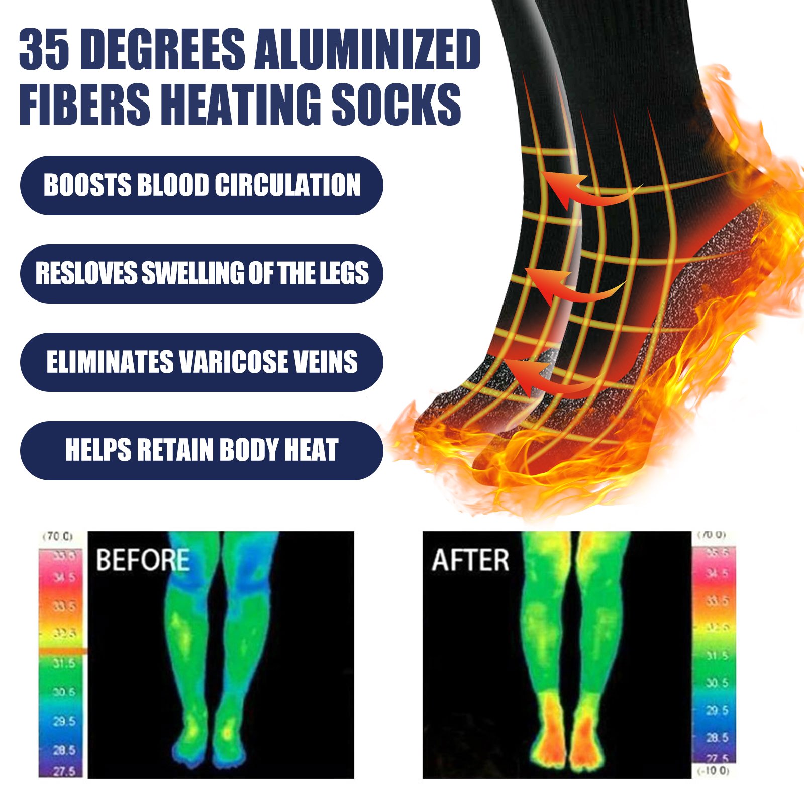 35 Degrees Aluminized Fibers Heating Socks, Relieve Vein Spontaneous Heat Constant Temperature Comfortable Warm Foot Cold Protection Socks