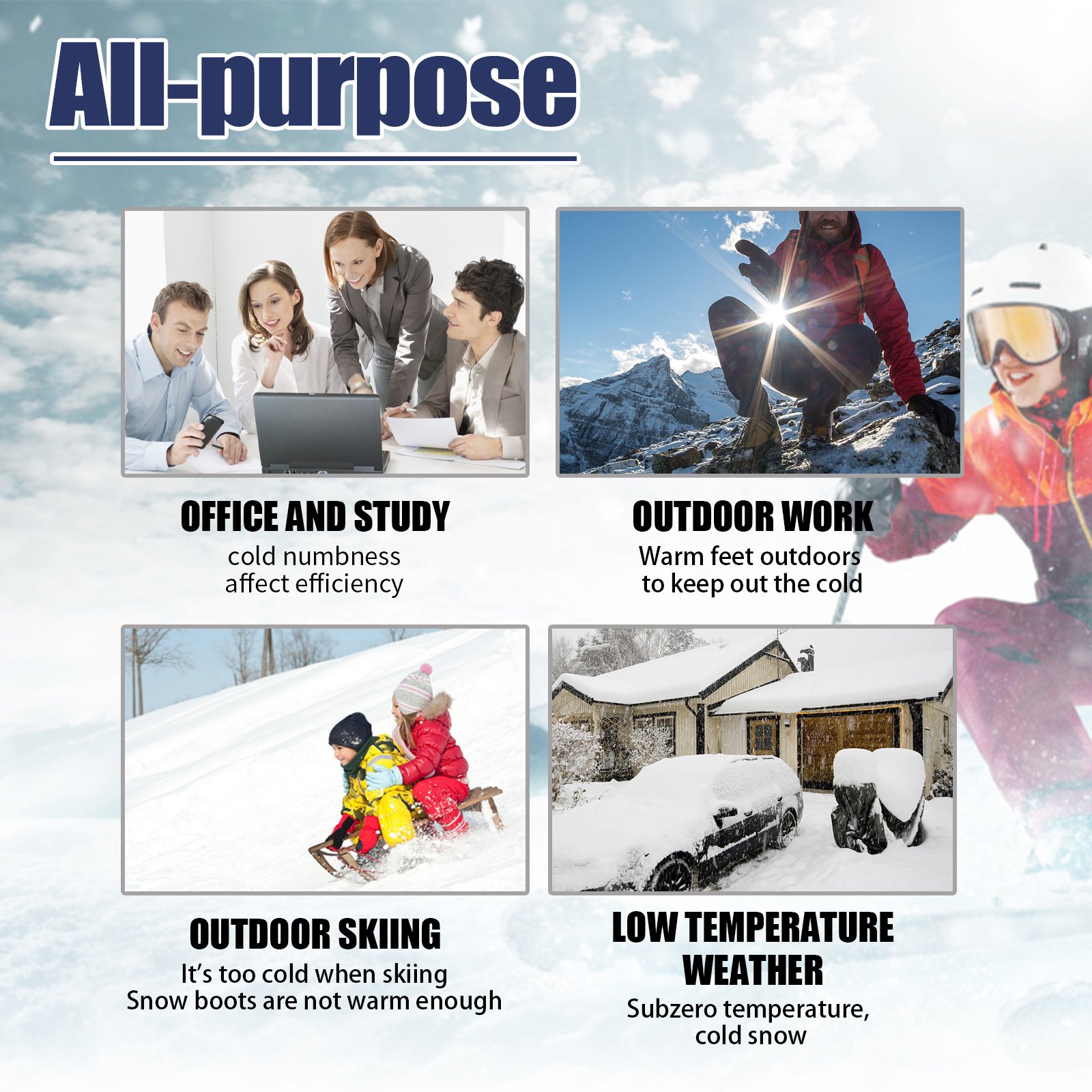 Our 35 Degrees Aluminized Fibers Heating Socks contain special braided aluminized fiber. It can improve blood circulation, relieve leg swelling, eliminate varicose veins, and help maintain body temperature. Wearing it regularly will help your legs get natural relaxation and comfort. Effective use of body heat, minimize sweat and moisture, stay warm and comfortable in the weather below 35 degrees, ideal for winter outdoor activities. The way to use it is very simple: wear warm socks, you can put on ordinary socks and shoes as needed. Promotes blood circulation, eliminates swelling and varicose veins, and helps maintain body heat.