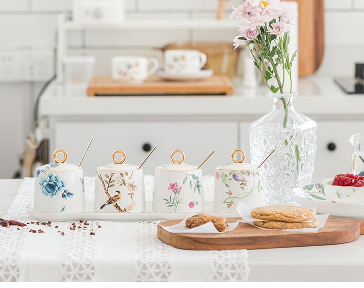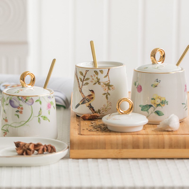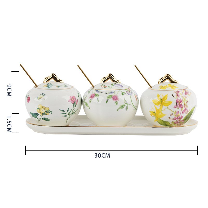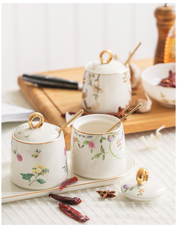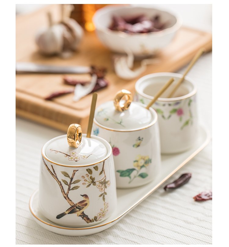 Golden round handle seasoning pot three-flavor set, golden round handle single pot bird, golden round handle single pot of Sarah, golden round handle single pot of sweet plum, golden round handle single pot of blue bird