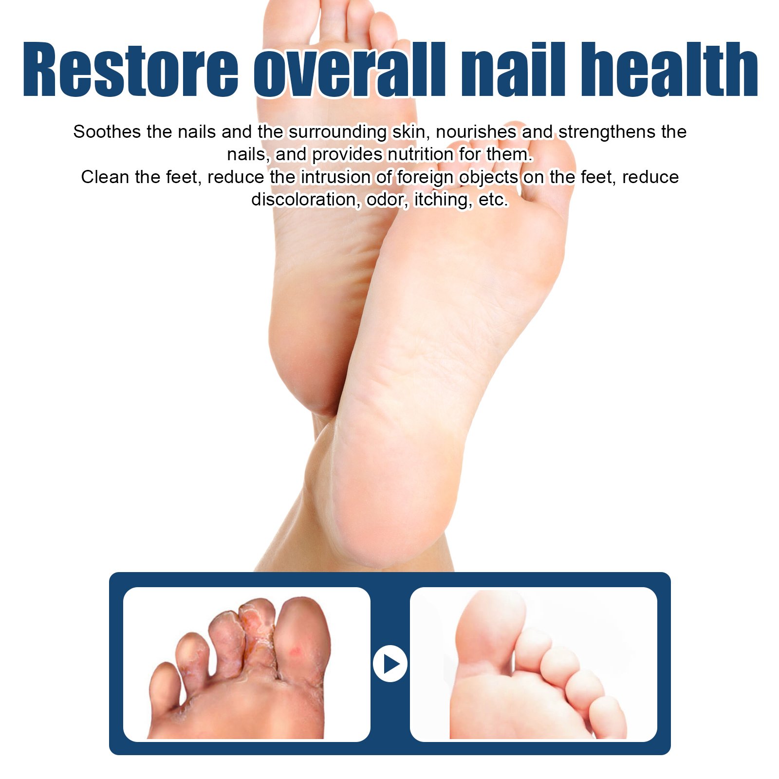 Our Athletes Foot Relief Spray contains aconitum extract, allantoin, and Pteris crassicum extract. It soothes nails and the surrounding skin, nourishes and strengthens nails, and provides them with nutrients. Clean the feet, reduce the invasion of foreign bodies on the feet, reduce discoloration, odor, cancer itch and so on. Effectively relieve foot sweat, foot odor, gray nails and other problems, moisturize and hydrate, reduce cracks caused by dryness, enhance skin moisture, and make skin smoother. Its use method is very simple: clean and dry the skin of the feet, press the spray evenly spray on the feet, wait 1-2 minutes for the spray to dry and absorb. Use twice a day for better results. Remove gray nails, effectively treat fungal infections, gray nails, nail infections, beriberi and unpleasant odors, relieve itching.