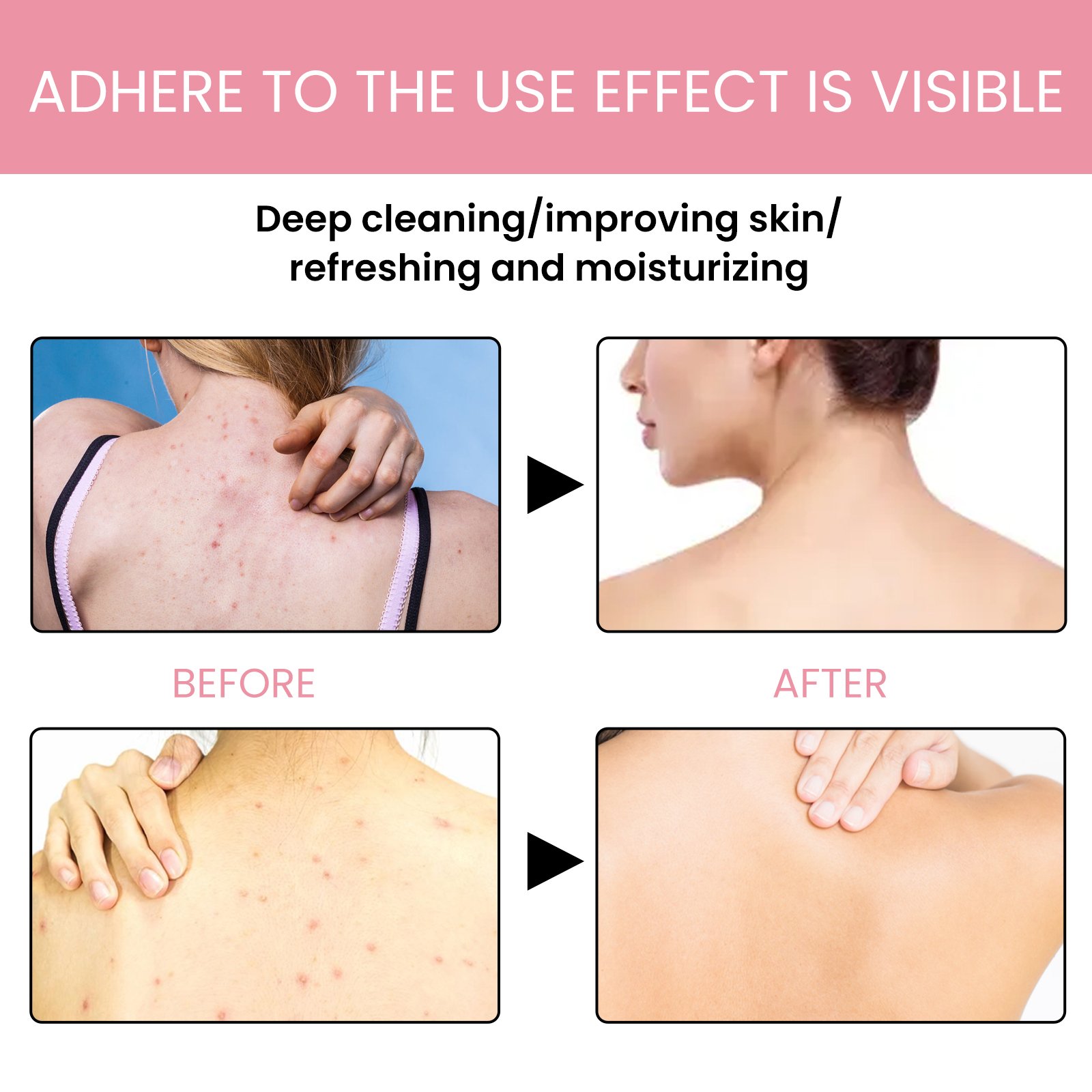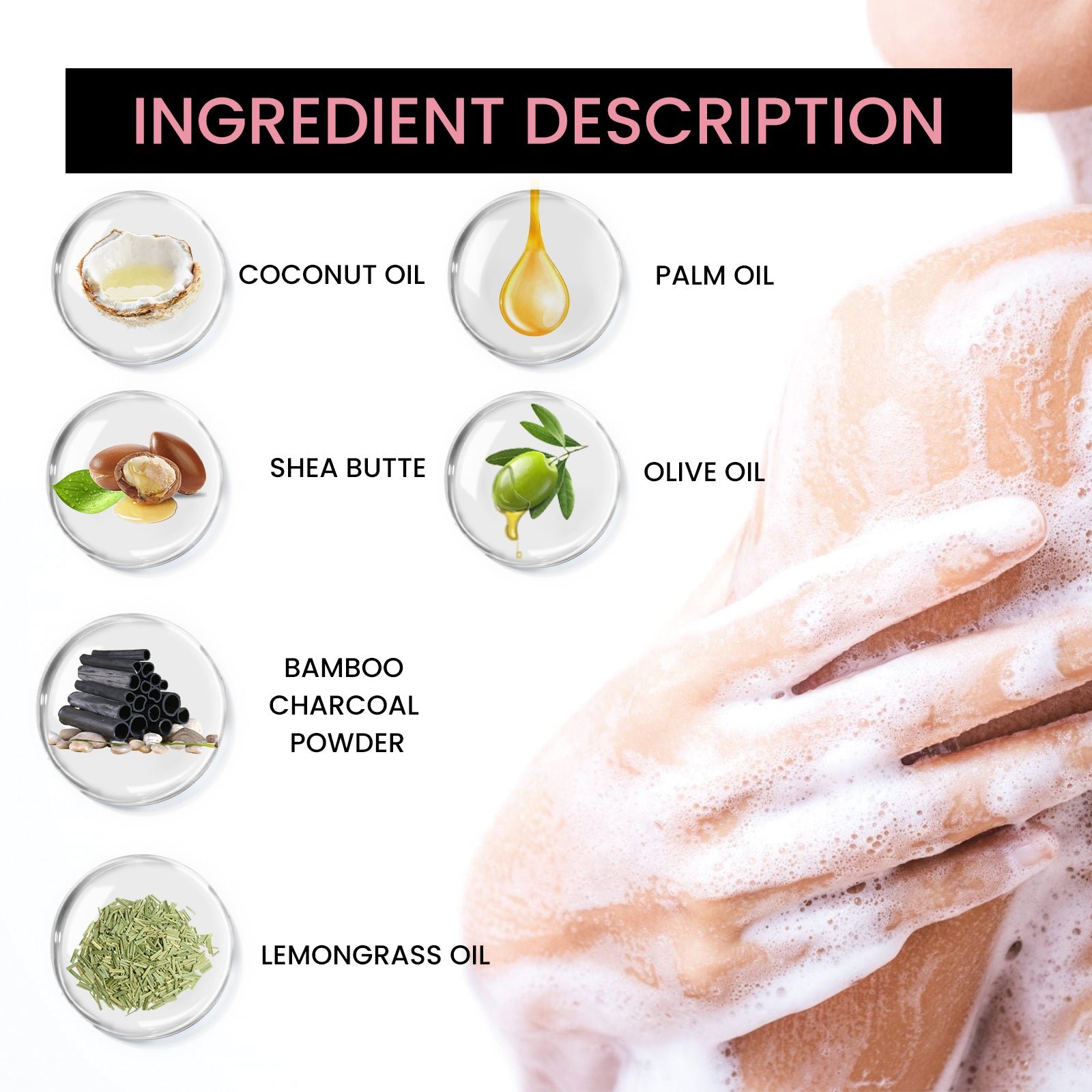 Our carbon clay back soap contains bamboo charcoal powder, coconut oil, olive oil. It gently cleanses the skin, keeps it hydrated, eliminates acne, restores the skin’s natural balance, and leaves your back flawless. The way to use it is very simple: first wet the soap with water, then gently rub the foam into the hands, then evenly apply the foam to the skin of the back, gently massage, and finally rinse off the foam with water. After use, it effectively cleanses, moisturizes and brightens the skin, reduces dryness and pigmentation, and leaves your skin more refreshed.