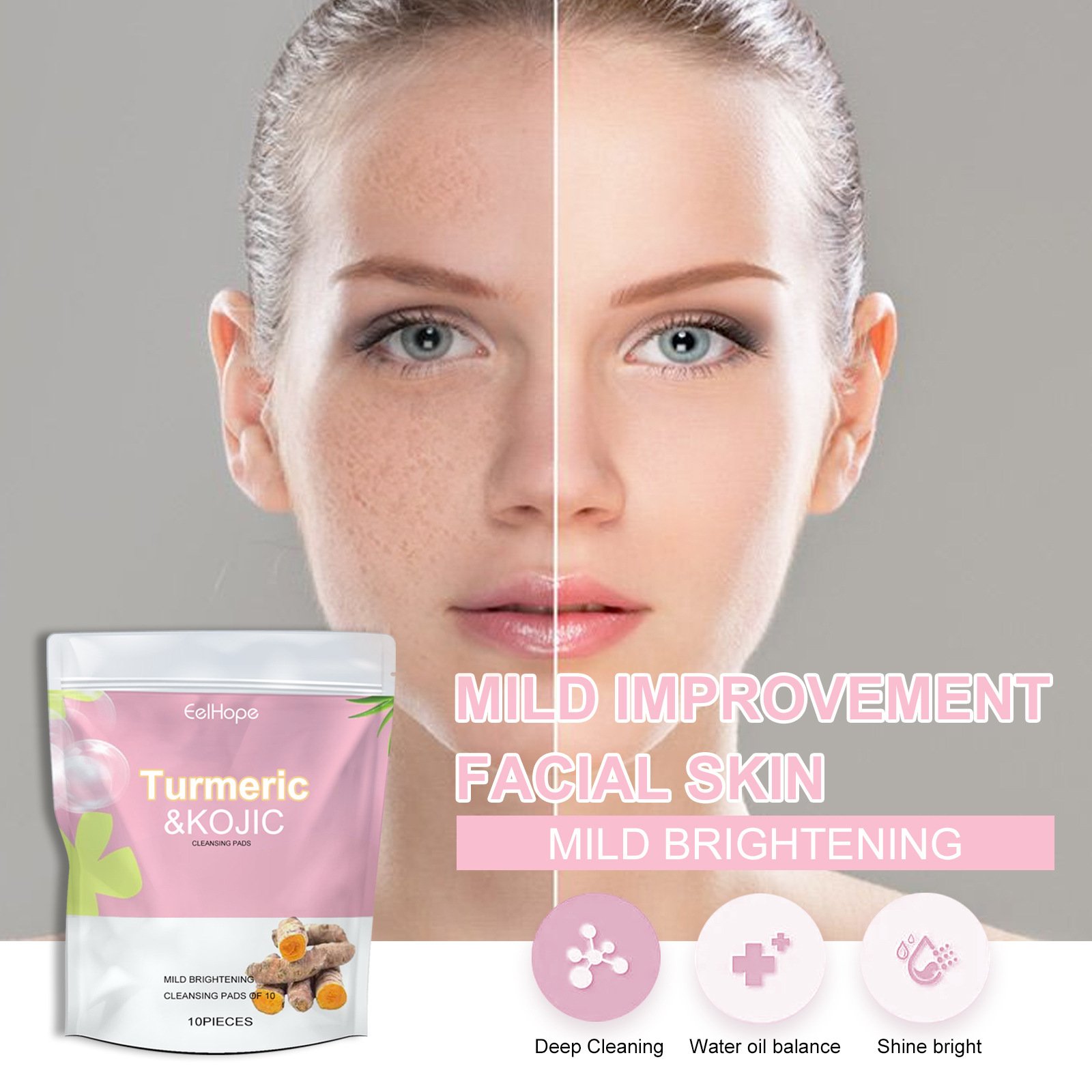 EelHope Turmeric & Kojic Cleansing Pads, Deep Clean Delicate Pores Reduce Acne Spots Facial Skin Brightening