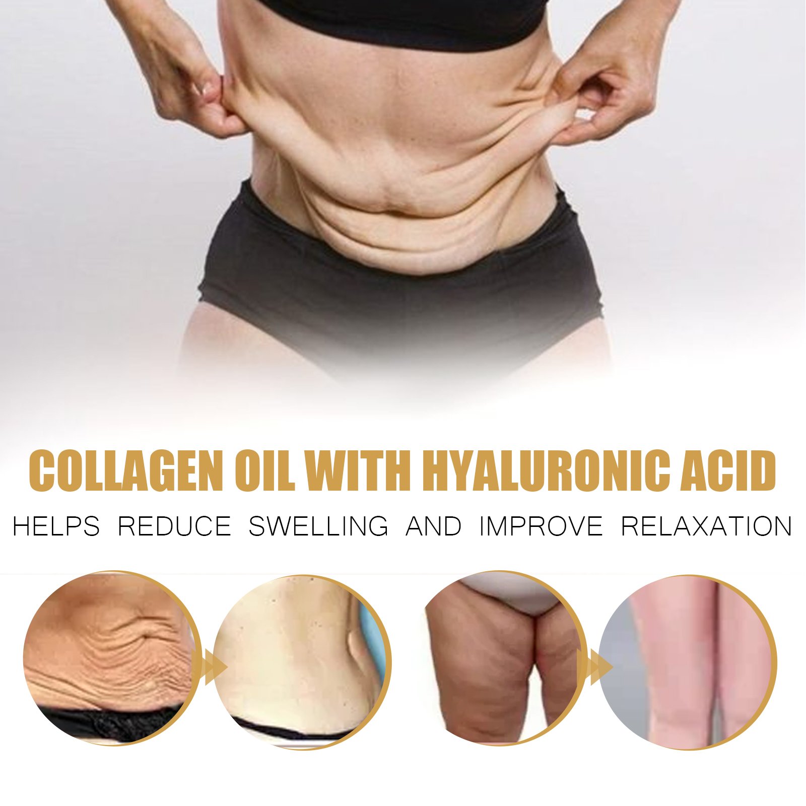 Our firming collagen oil contains hyaluronic acid, collagen and moringa oil. It improves the texture of your skin and also helps to improve moisture and elasticity while reducing the appearance of orange peel tissue. Its use method is very simple: first clean and dry the skin, apply an appropriate amount of essential oil evenly on the body skin, and then gently massage until the skin absorbs, which helps to accelerate metabolism, eliminate aging fat cells, prevent fat accumulation, improve skin microstructure, nourish the skin, and make the skin smooth and soft.