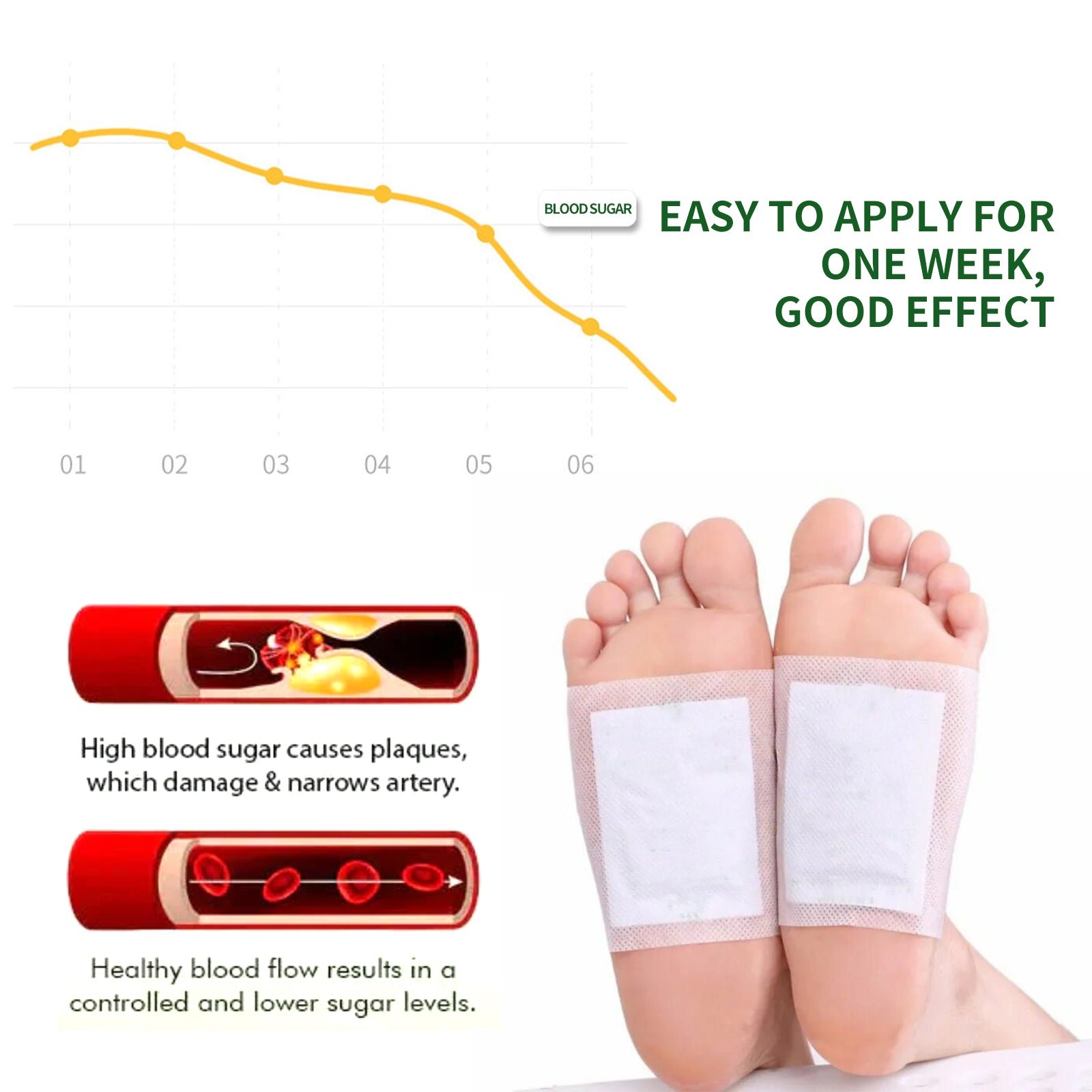 Our Foot Pads contain wormwood, bamboo vinegar extract and ginger extract. It can effectively dissipate dampness and cold, lower blood sugar levels, and boost the immune system. Its use method is very simple: after cleaning the bottom of the foot skin, take out the product, tear off the release paper, and stick the product on the bottom of the foot. It can lower blood sugar levels, strengthen the immune system, and boost insulin production.