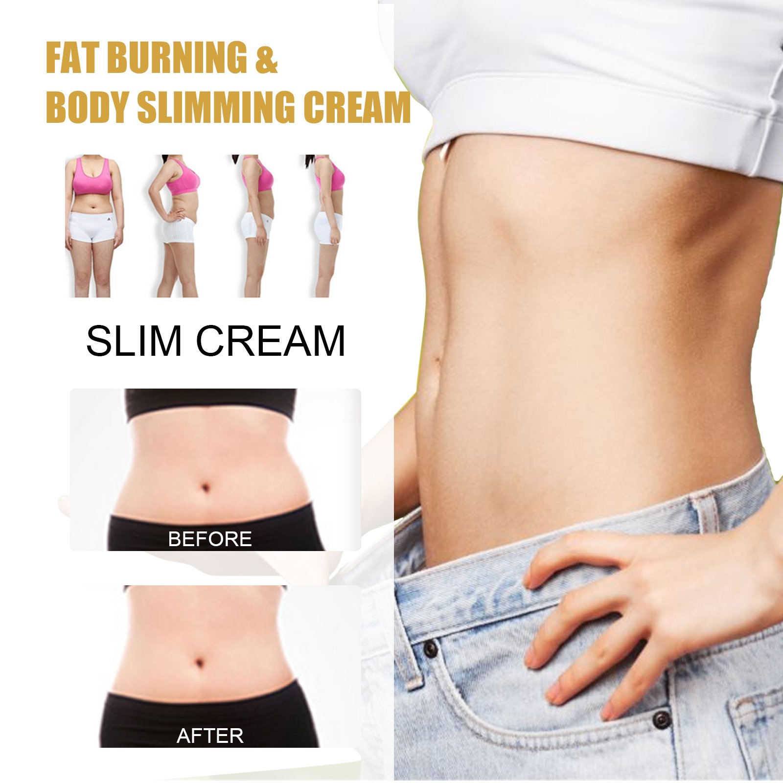 Our Ginger Slimming Cream contains water, ginger. It can accelerate metabolism, eliminate aging fat cells, help remove excess fat under the skin, prevent fat accumulation, tighten and moisturize the skin, and improve skin structure. Its application method is very simple: first clean and dry the skin, apply an appropriate amount of this product evenly on the desired area, then massage for 5 minutes, slowly feel the generated heat until absorbed, after use, help significantly reduce swelling, orange peel tissue smooth and firm the skin, expel excess water, help to lose weight, strengthen and build a slim figure.