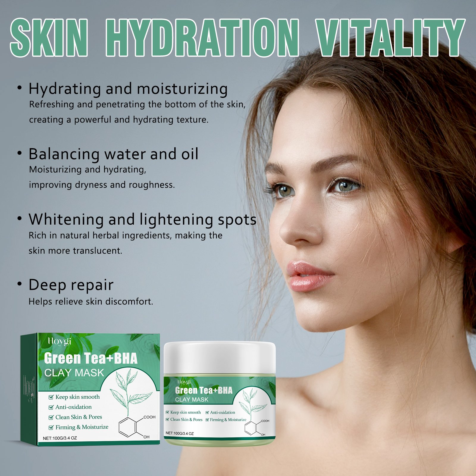 Green Tea Cleansing Mud Mask, Facial Cleansing Moisturizing Whitening Skin Blackhead Acne Removing Mud Mask