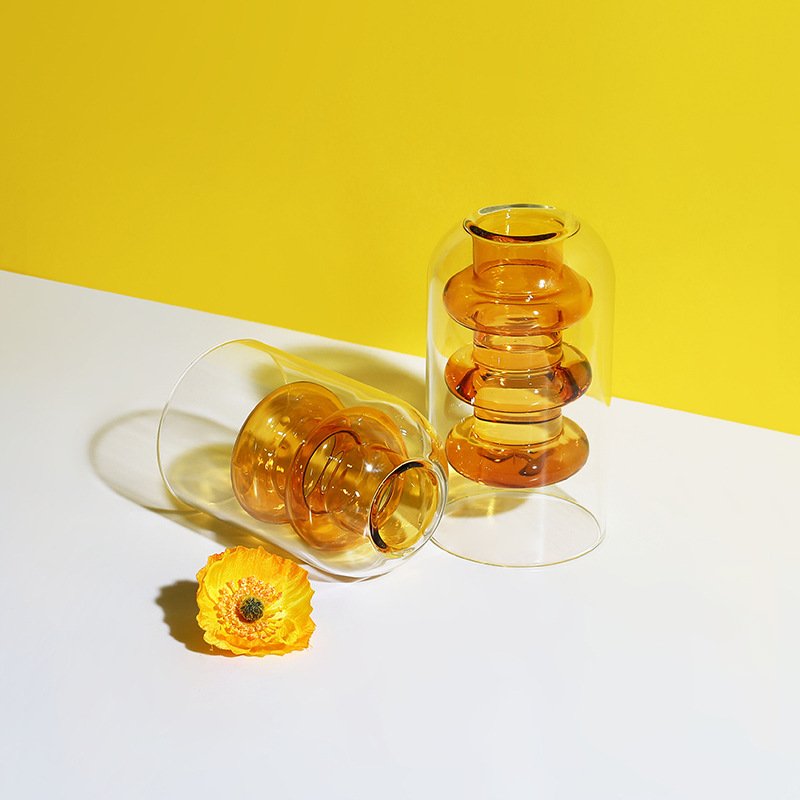 Home Decoration Accessories Nordic Ins Colourful Glass Transparent Vase Living Room Dining Table Dried Flowers Hydroponic Vases