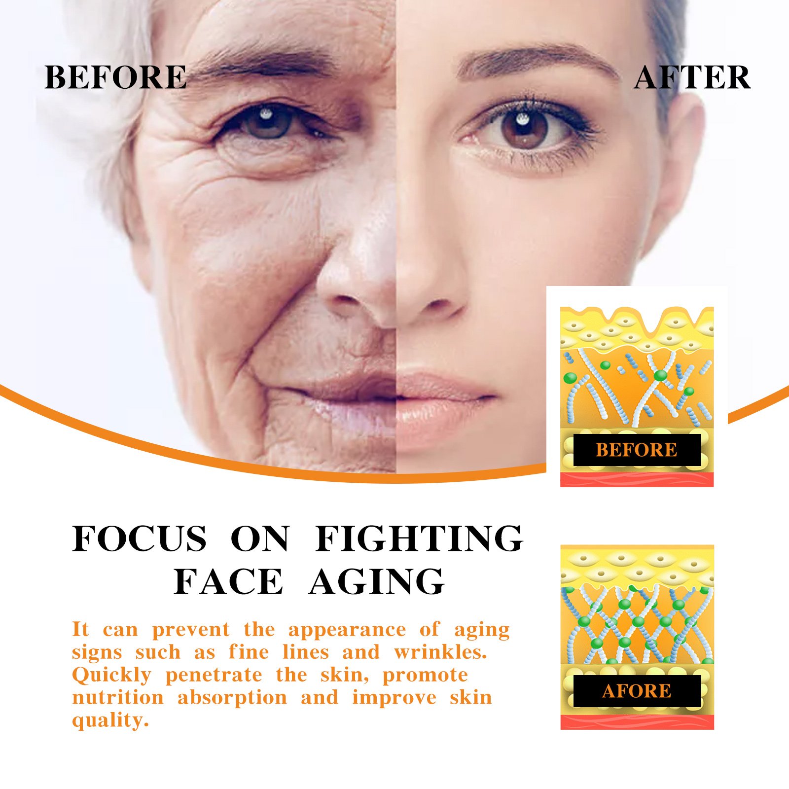 Our Honey brightening Face serum contains Manuka honey, hyaluronic acid and betaine. It can prevent signs of aging such as fine lines and wrinkles, quickly penetrate and moisturize the skin, promote nutrient absorption, and improve skin quality. Its use method is very simple: First use an eyedropper to put 3-5 drops of essence on the palm of the hand, gently apply the essence on the face, then massage gently with the fingertips to help absorb, after use helps to reduce dark spots, reduce hyperpigmentation, improve uneven skin tone, enhance skin elasticity, thereby reducing the appearance of wrinkles.