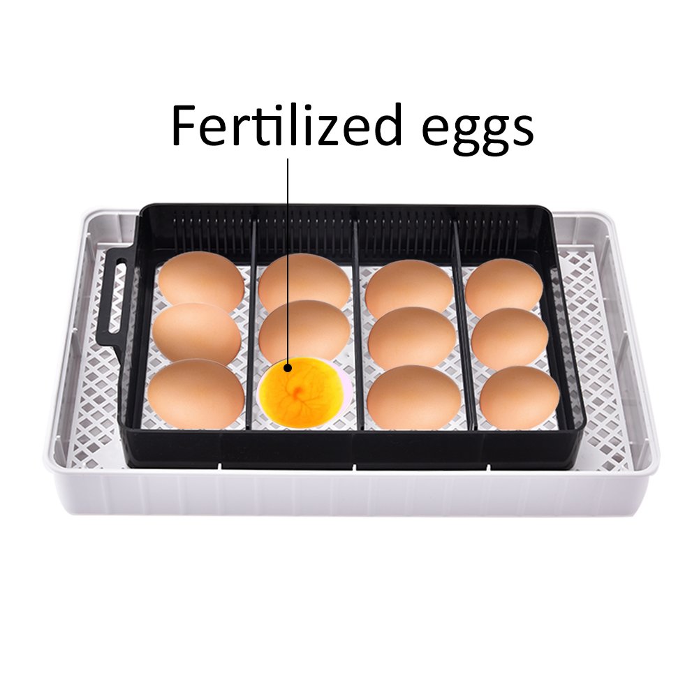 Egg capacity: 12 eggs, 9 duck eggs, 9 goose eggs, 4 pigeon eggs, 24 quail eggs, 35 eggs