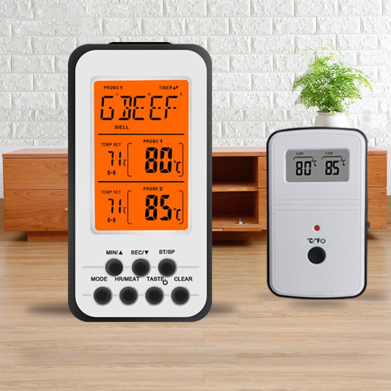 Special functions: wireless transmission food thermometer, countdown, programmable RF food temperature tester, with backlight, temperature alarm
