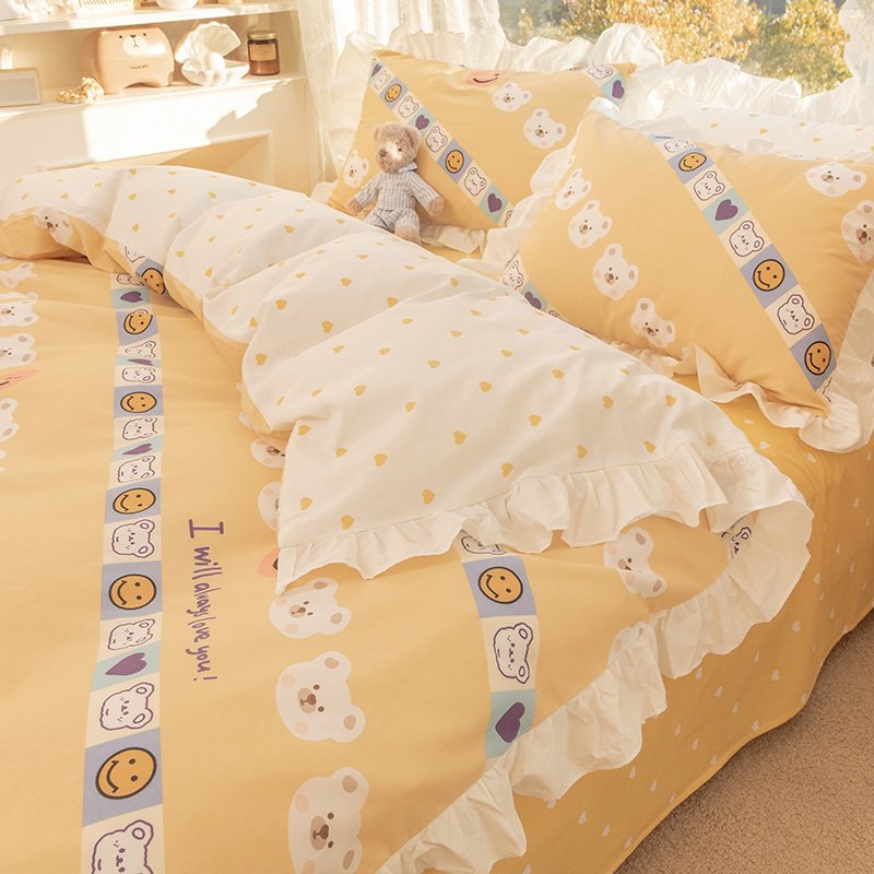 Korean Bed Skirt Pure Cotton Bed Four-piece Set 100 Cotton
