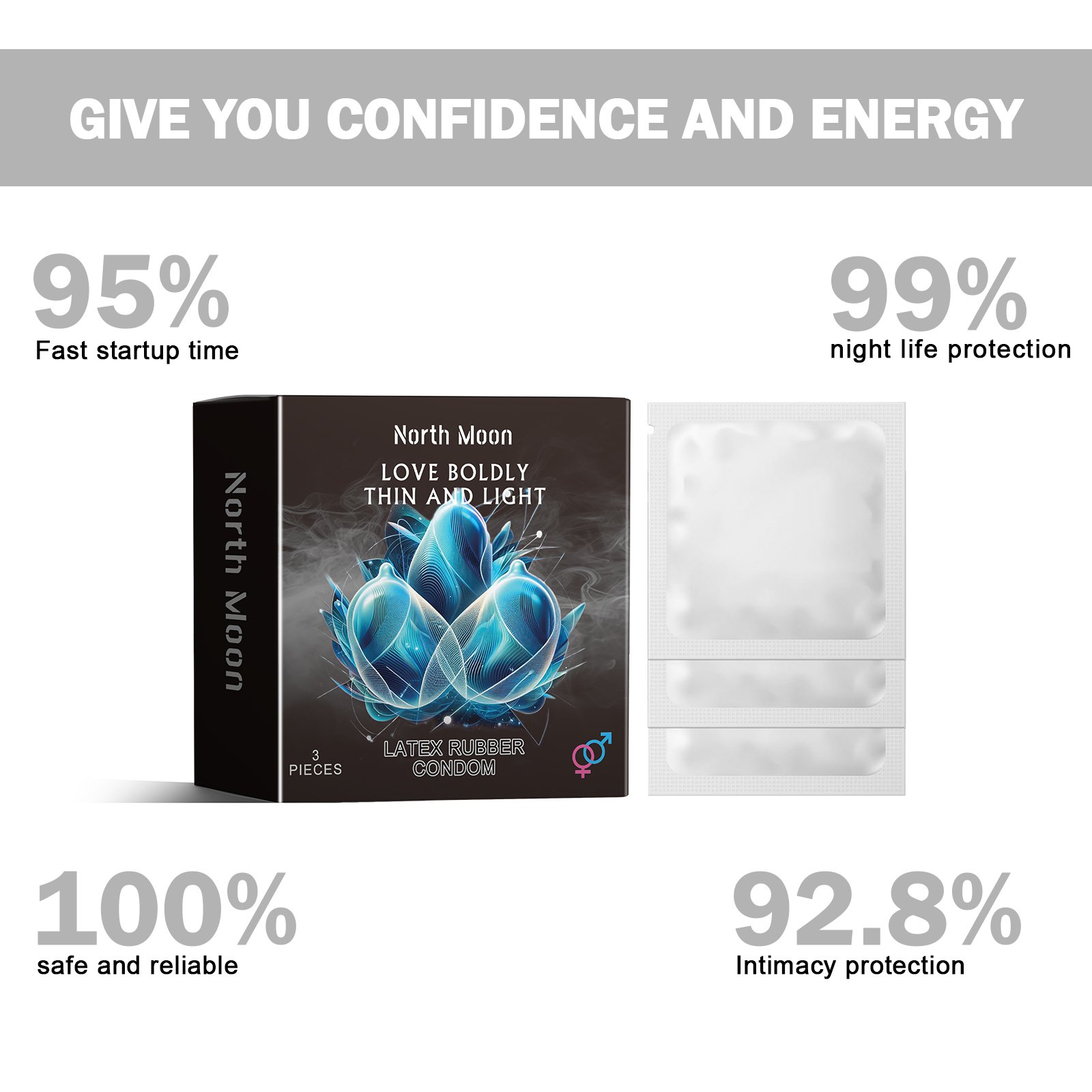 Our Latex Rubber Condom contain latex rubber. It can help men release the hidden power within them, take the experience of intimacy to new heights, and help men regain their confidence. The way to use it is simple: check the package for damage before use, make sure the condom is not expired, and then carefully tear along the edge of the package, avoid using sharp objects to avoid damaging the condom. Make sure the condom is facing the right way, with the curled edges on the outside, squeeze the air from the top of the condom to prevent it from breaking during sex, then put the condom on your private area and remove it after use. Can revitalize and restore masculinity, and solve the problem of erectile dysfunction.