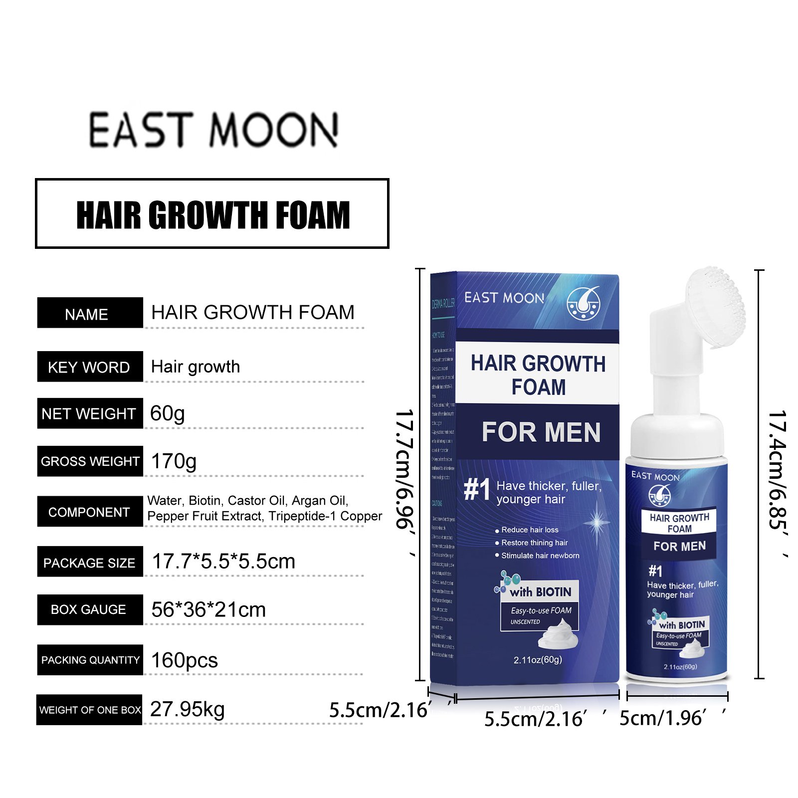 Our Men’s Hair foam contains water, biotin and castor oil. It helps the serum penetrate to wake up the sleeping hair follicles and encourage new hair follicles to grow longer and thicker. Its use is simple: 1. Clean and dry your hair and scalp. 2. Apply 1-2 pump foam directly and evenly, gently massage the scalp with a brush for 1-2 minutes until it dries naturally. After use, the hair skin is awakened and gradually grows more and more black hair, and it is very healthy.