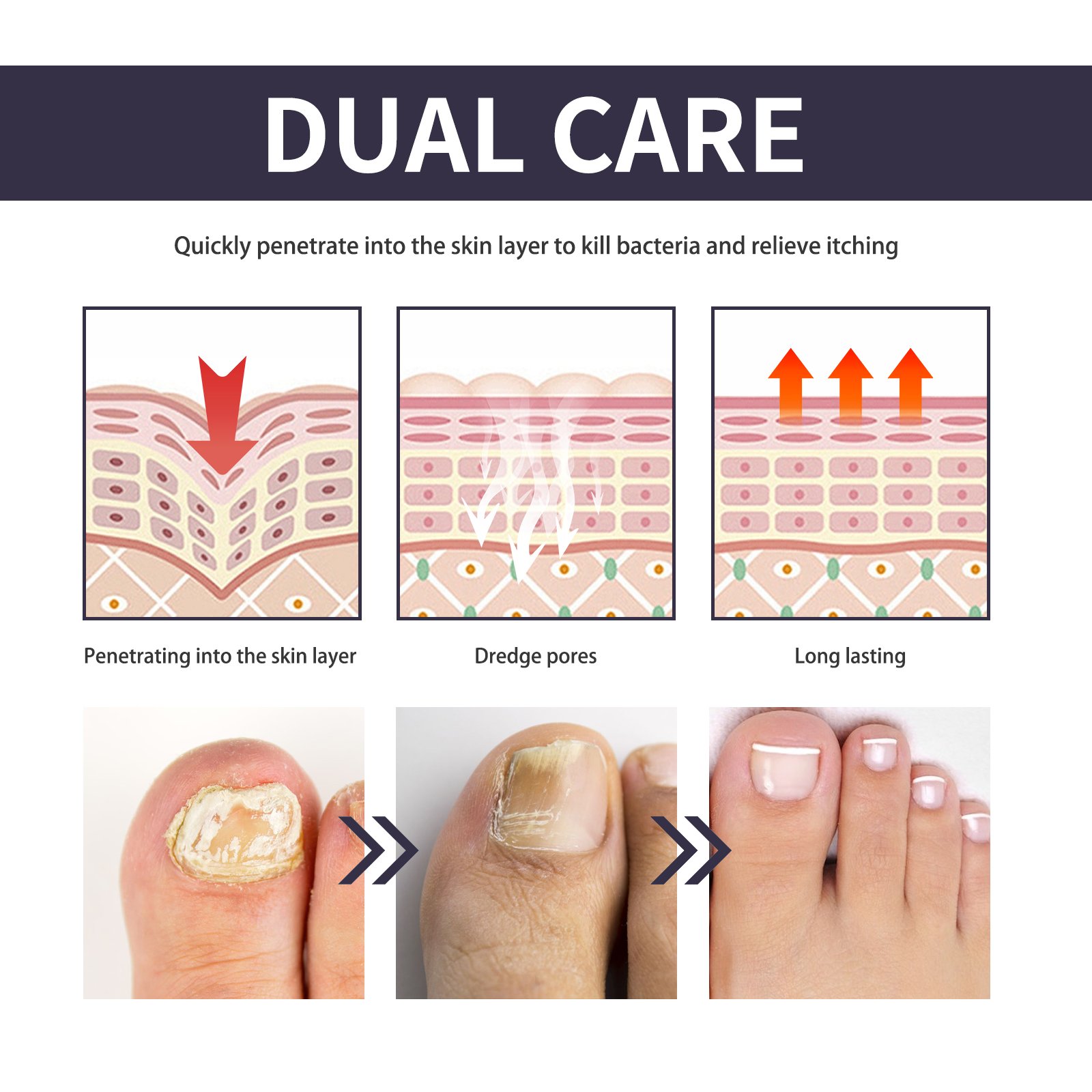 Our nail repair serum contains glycerin, panthenol and PCA sodium. It can help repair nail discoloration, repair keratin nail cells and toes, soften and repair dry nails, strengthen and nourish nails, and help eliminate fungi that affect nails. The way to use it is simple: First remove the lid and soak in hot water for 5 minutes, then thoroughly dry your feet or hands. Use nail clippers and files to remove as much of the damaged nail as possible. Apply it to the areas that need to be repaired, after use, it helps to help fight nail fungus, provide rich nutrients to the nails, thus promoting the repair function of the nails, help the nails to grow quickly and recover, and rebuild beautiful nails.