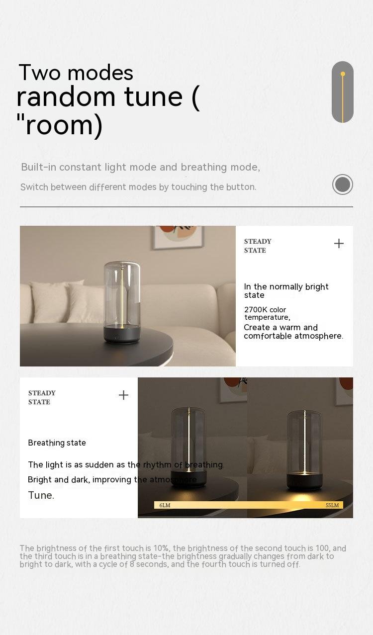 1. Two modes can be adjusted according to the heart+(normal breathing state with built-in constant light mode and breathing mode), and different modes can be switched through touch buttons.