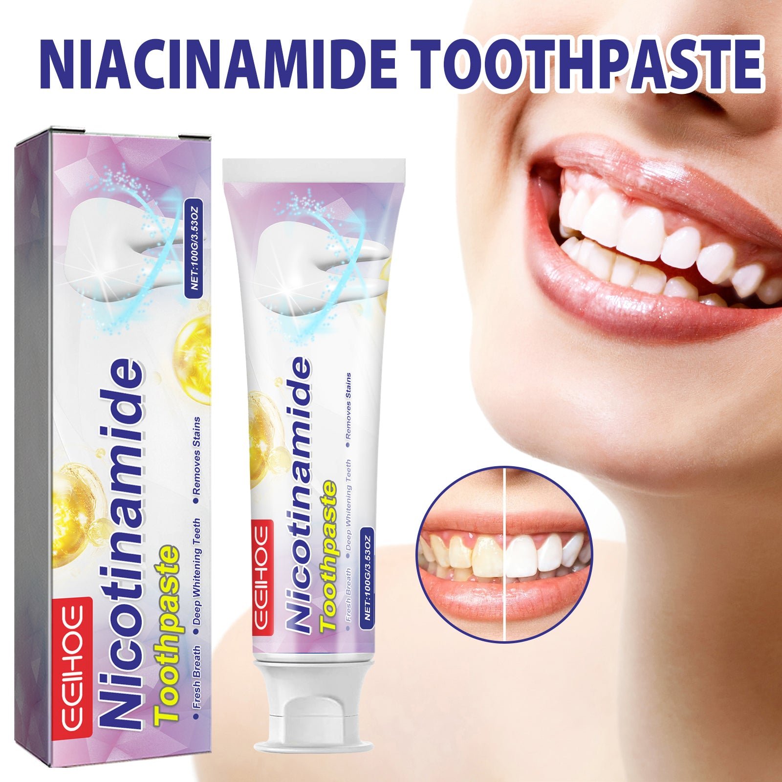 Niacinamide Toothpaste, Cool White Toothpaste Freshen Breath Clean Mouth Guard Gum Jianchi Bright White Toothpaste