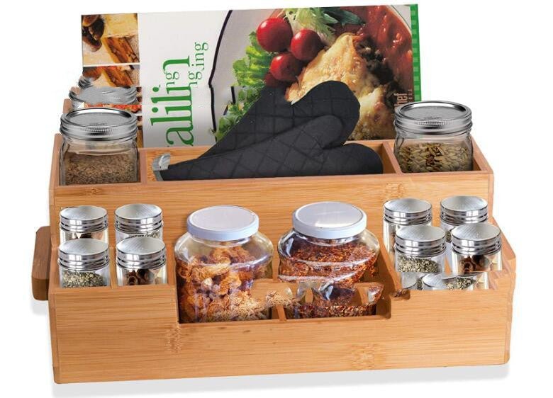 Soy Sauce Bottle Seasoning Jar Storage Kitchen Rack Bamboo Seasoning Box Wooden