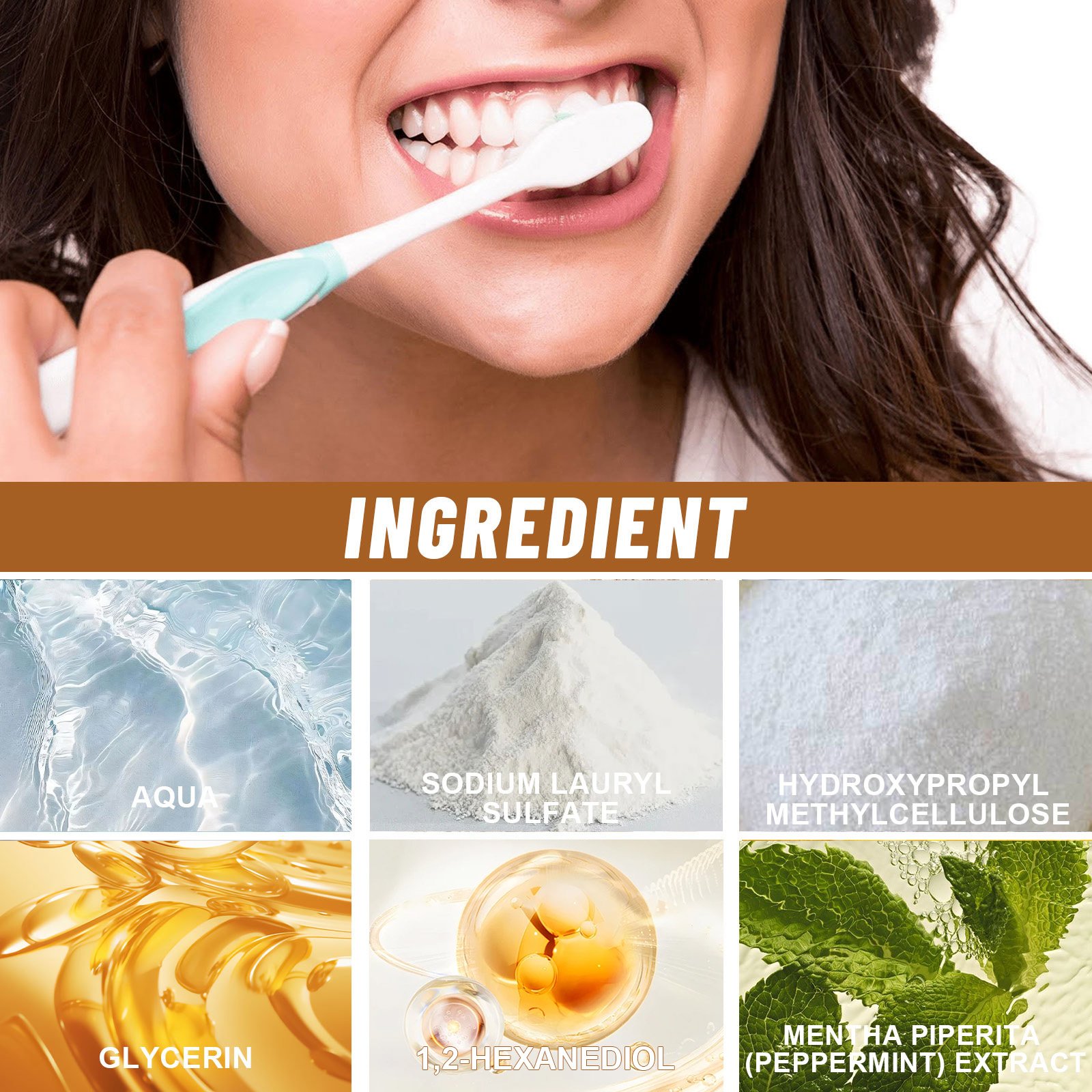 Our toothpaste for stain removal contains sodium lauryl sulfate and hydroxypropyl methyl cellulose. It helps protect dental health, deep cleaning and removal of small and deep stains. The way to use it is simple: squeeze a small amount of toothpaste on the toothbrush and brush for more than 2 minutes. Then gargle with water and brush once every morning and night to make the brightening effect better. After use, it gently cleans the teeth and has a fresh mint scent to keep the mouth odor clean and remove bad breath.