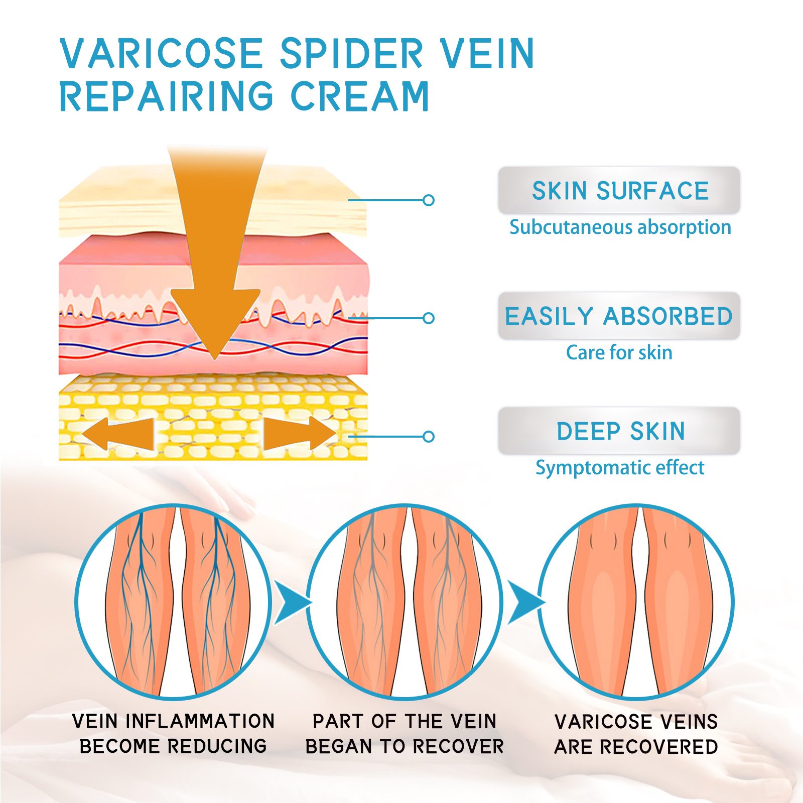 Our Varicose Spider Vein Repairing Cream contains peppermint oil, glycerin, and matrine extract. It can speed up blood circulation, avoid blood stagnation in the lower extremities reduce the appearance of varicose veins, and make the skin smooth and natural. Its application method is very simple: cover the affected area with a hot towel for 2-3 minutes, apply an appropriate amount of the cream evenly on the skin, and then gently massage with your hand until absorbed. Use twice a day for better results. Soothe the skin, replenish moisture and nutrients, and make the skin smoother and more elastic.