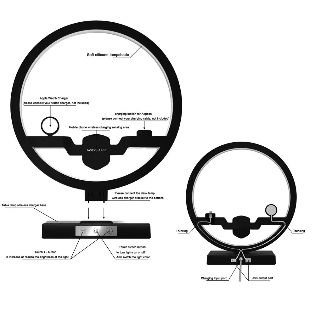 Wireless Charger Stand Table Lamp Touch Switch 10W Charger For Apple Watch Cell Phones Headphones